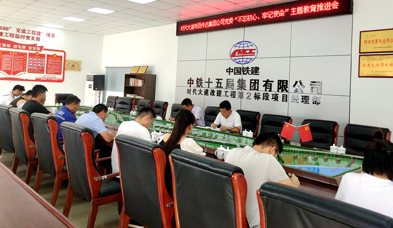 7月16日,時(shí)代大道改建工程臨時(shí)黨支部召開 “不忘初心、牢記使命”主題教育推進(jìn)會(huì),會(huì)議由項(xiàng)目書記馬忠玉主持,項(xiàng)目部全體黨員、發(fā)展對(duì)象、入黨積極分子參加。
