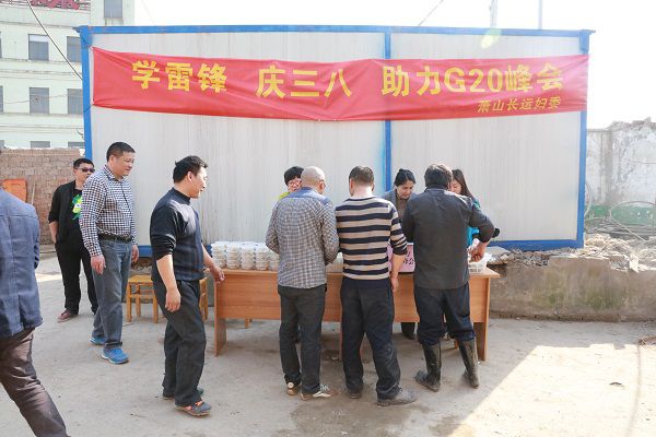 去年為了慶祝“三·八”婦女節(jié)的到來(lái),蕭山長(zhǎng)運(yùn)公司的女職工們紛紛變身“廚娘”,在包餃子大賽上相互PK、一顯身手。今年,包餃子大賽“升了級(jí)”:她們把煮好的水餃送進(jìn)了湘湖三期湖面挖運(yùn)工地,讓為G20峰會(huì)辛勤工作的工友們享受一頓免費(fèi)的點(diǎn)心。