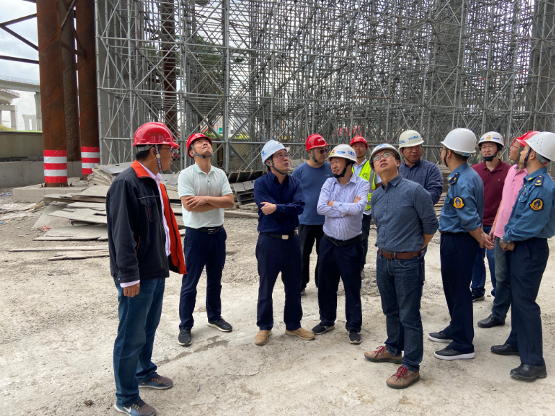 10月14日省交通工程管理中心項(xiàng)柳福主任、戴曉棟副主任分別帶隊(duì)組織了對(duì)03省道東復(fù)線高架南延工程和時(shí)代大道改建工程 “特種設(shè)備使用和施工便道安全”專項(xiàng)整治活動(dòng)及“堅(jiān)守交通建設(shè)工程質(zhì)量安全紅線”專項(xiàng)行動(dòng)檢查。杭州市質(zhì)監(jiān)站、蕭山區(qū)質(zhì)監(jiān)站相關(guān)領(lǐng)導(dǎo)集體參與檢查,蕭山交通建管公司領(lǐng)導(dǎo)陪同檢查。