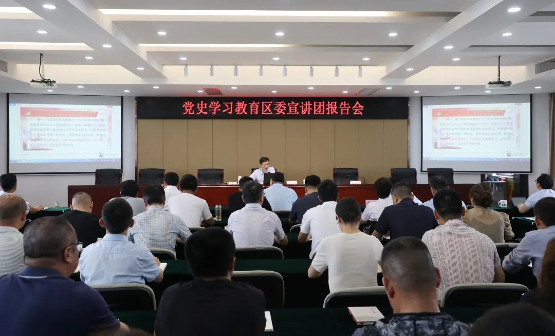 為推動黨史學習教育扎實開展,引導廣大黨員干部學黨史、講黨史、懂黨史,鼓舞黨員干部守初心、擔使命、謀發展,進一步濃厚學黨史、悟思想、辦實事、開新局的氛圍,根據區黨史專題宣講工作安排,5月14日,集團舉辦黨史學習教育區委宣講團報告會。會議邀請了區委宣講團成員、區社科聯副主席傅浩軍作黨史學習教育宣講報告。集團班子成員,集團全體中層人員,各黨組織書記、黨建工作職能科室負責人、黨務工作者及團組織負責人參加。