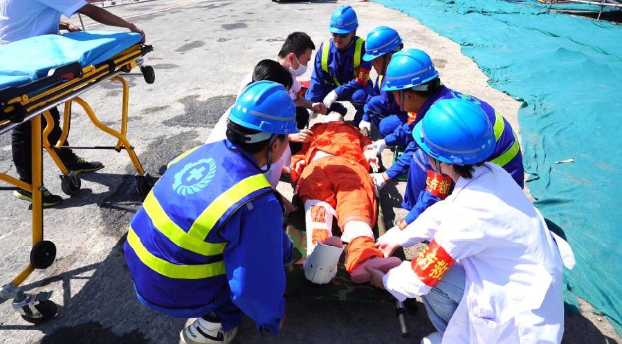 本次演練場地位于時代大道與魚浦街叉口處的施工現場18號墩,模擬立柱鋼平臺拆除過程中,由于防護網片脫落,兩名作業人員墜落受傷,圍繞這一假想事故,展開應急處置的過程。通過此次演練,檢驗了應急預案啟動、傷員搶救、險情處置、信息上報、救援指揮、善后處理等應急措施的執行落實,各參演單位和人員進一步熟悉、掌握、運用了應急救援知識及相關的救助程序、方法,提高了應急管理救援水平,完善了應急救援體系和應急預案的可行性、緊密性和可靠性。同時,也積累了應對突發事件的實戰經驗,達到了預期的目的,取得了圓滿成功。其他項目的相關負責人觀摩了本次演練。