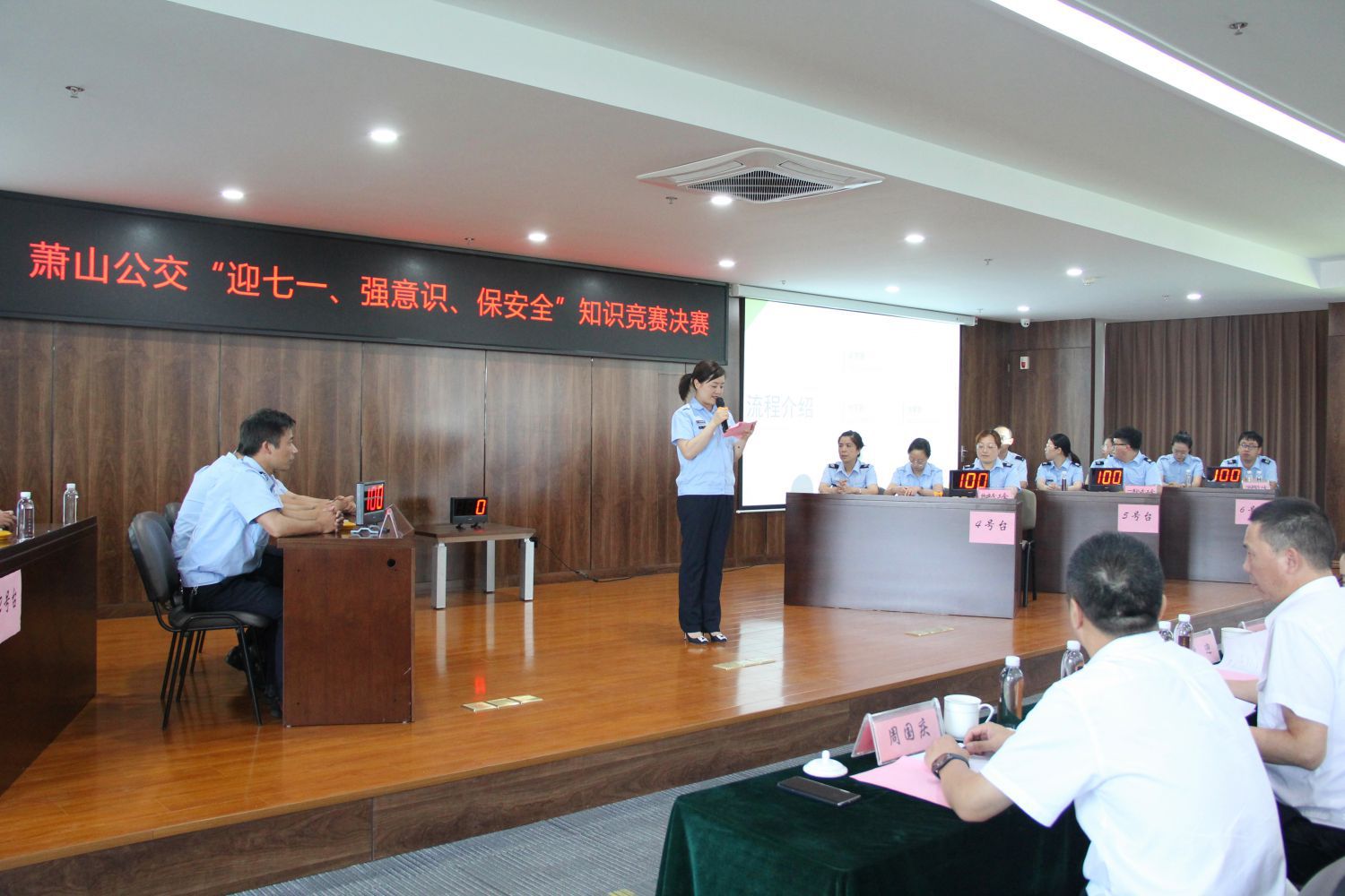 為進(jìn)一步深化安全生產(chǎn)建設(shè),營(yíng)造全員學(xué)習(xí)、全員參與的良好生產(chǎn)氛圍,結(jié)合第二十個(gè)全國(guó)“安全生產(chǎn)月”活動(dòng),6月24日,蕭山公交工會(huì)積極開展“迎七一、強(qiáng)意識(shí)、保安全”知識(shí)競(jìng)賽。蕭山區(qū)交通運(yùn)輸局領(lǐng)導(dǎo)應(yīng)邀出席,公司班子、各車隊(duì)安全管理人員、各分工會(huì)職工代表80余人參加觀摩。