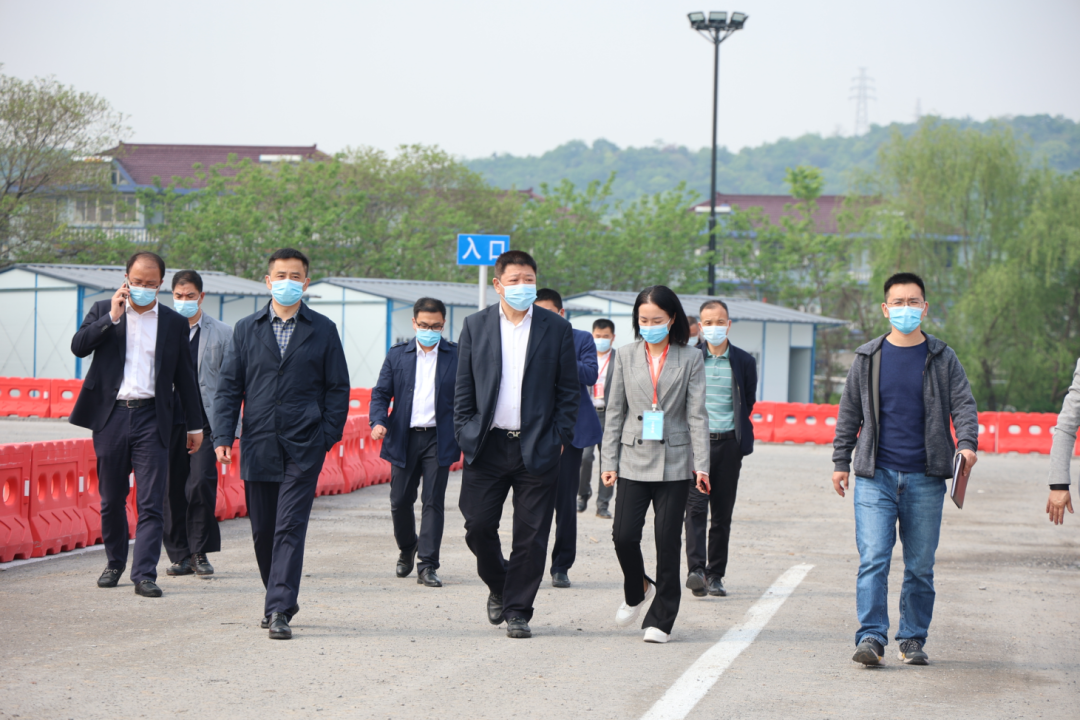 4月18日下午,副區長方軍一行檢查新塘街道姑娘橋村貨車司機防疫服務點運行情況。區有關部門、單位、鎮街負責人,集團副總經理鐘波陪同。