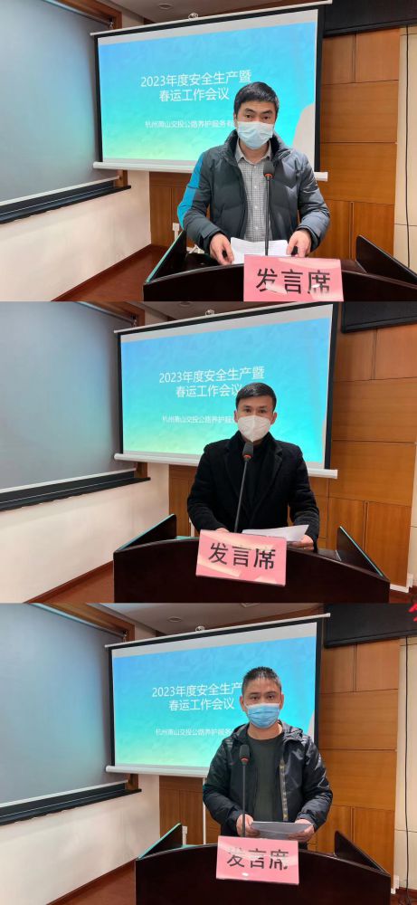 養(yǎng)護(hù)工程科副科長(zhǎng)陳立豐、瓜瀝站副站長(zhǎng)桑恩光、臨浦站副站長(zhǎng)樓杭力分別作表態(tài)發(fā)言。