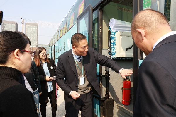 本次演練共5項內容,分別是:湖南郴州6.26旅游客車特大事故案例通報學習;安全錘、滅火器的正確使用方法及滅火要點的培訓;車廂內現場演練車門斷氣開關、逃生天窗的操作步驟;模擬車輛行駛途中發生自燃,進行逃生疏散演練;旅行社導游學習使用滅火器滅火。客運分公司副經理黃曉健主持了培訓,并按計劃帶領到場人員完成演練各項內容。