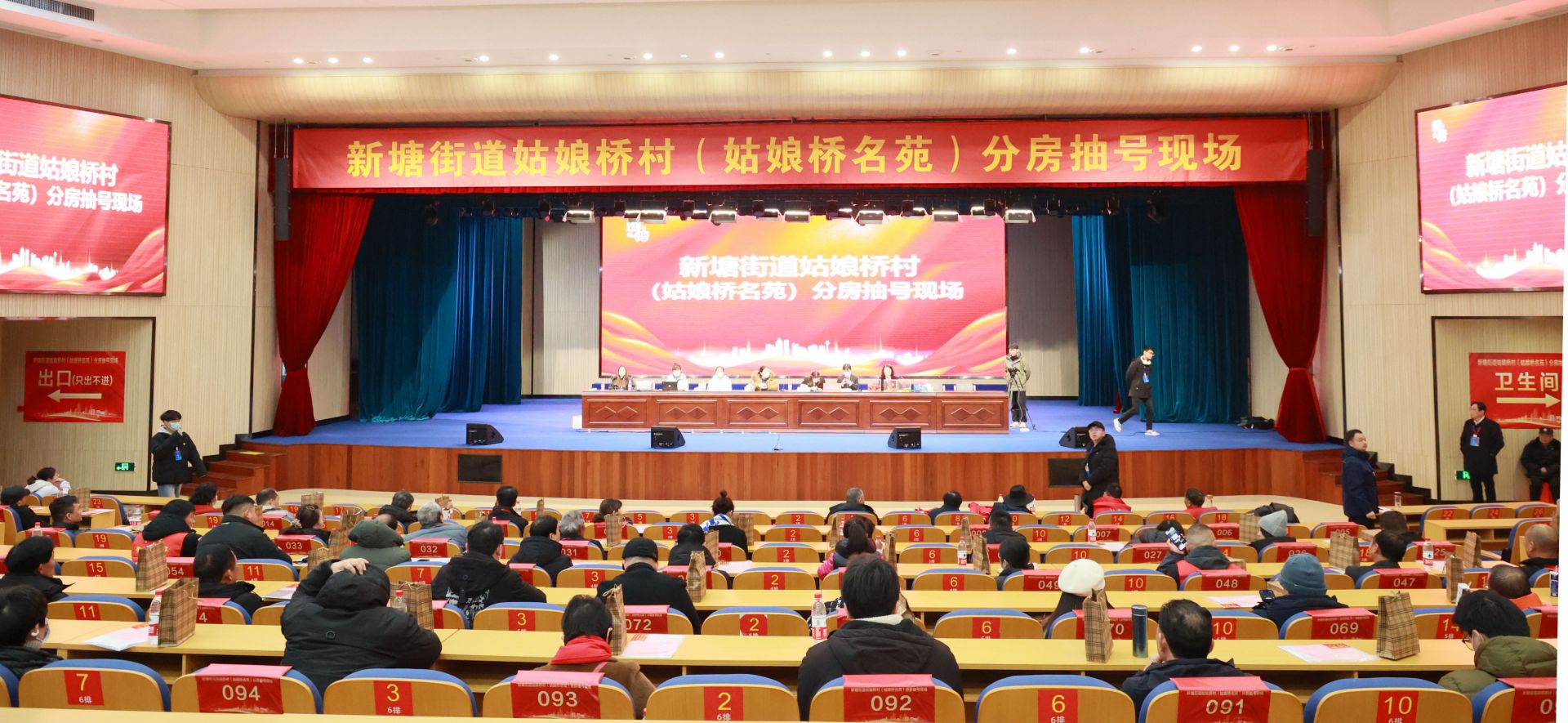 對于姑娘橋村人而言,這注定是個難忘的周末。雖是寒潮來襲、氣溫驟降,但零下4度的嚴(yán)寒也抵擋不住他們似火的熱情。一大早,按捺不住激動心情的村民已陸續(xù)抵達場外等候,現(xiàn)場一片喜氣洋洋。工作人員認(rèn)真核驗證件、維持秩序,引導(dǎo)各位村民就座,分房工作有條不紊地進行。現(xiàn)場還貼心地搭建了群眾休息區(qū),為等待的人群提供一方溫暖天地。