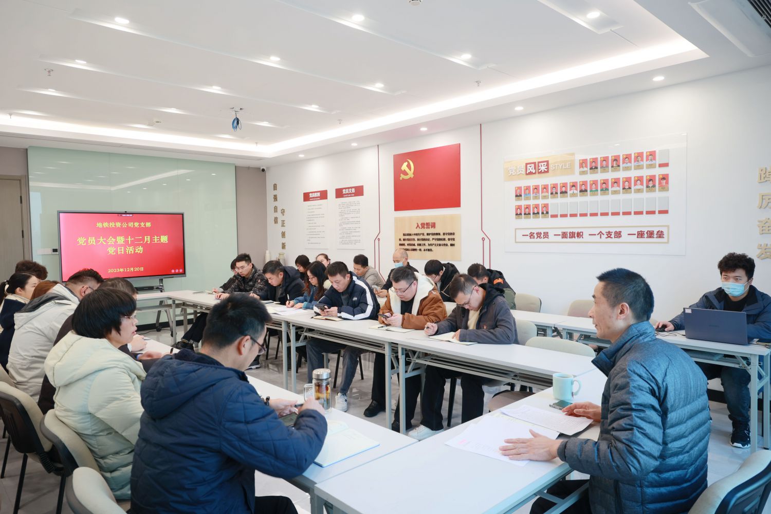 12月20日,蕭山地鐵投資公司黨支部召開黨員大會暨開展12月份主題黨日活動,全體黨員、入黨積極分子、青年干部、青年骨干參加活動。會上,支部書記孔松良帶大家學習第一議題《習近平總書記在北京河北考察災后恢復重建工作時的重要講話精神》和《習近平總書記在中央金融工作會議上的重要講話精神》。隨后,根據集團黨群部要求對《省委十五屆四次全會精神》及《市委十三屆五次全會精神》進行了重點學習。