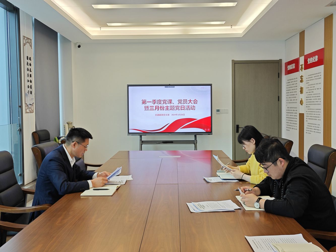 3月28日上午,交通新鎮(zhèn)公司黨支部開展第一季度黨課、黨員大會暨三月份主題黨日活動。會議由黨支部書記邵發(fā)強(qiáng)主持,全體黨員參加。