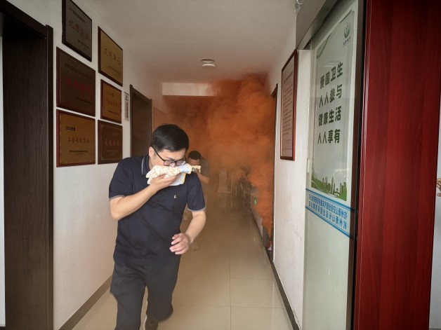 最后由安全營(yíng)運(yùn)部負(fù)責(zé)人韓利明組織在辦公場(chǎng)所內(nèi)投擲煙霧彈,頓時(shí)煙霧繚繞,全體職工在面對(duì)突發(fā)事件臨危不亂、沉著冷靜,全員采取了正確的逃生姿勢(shì),整個(gè)過(guò)程組織嚴(yán)密,疏散有序,逃生演練取得了圓滿成功。