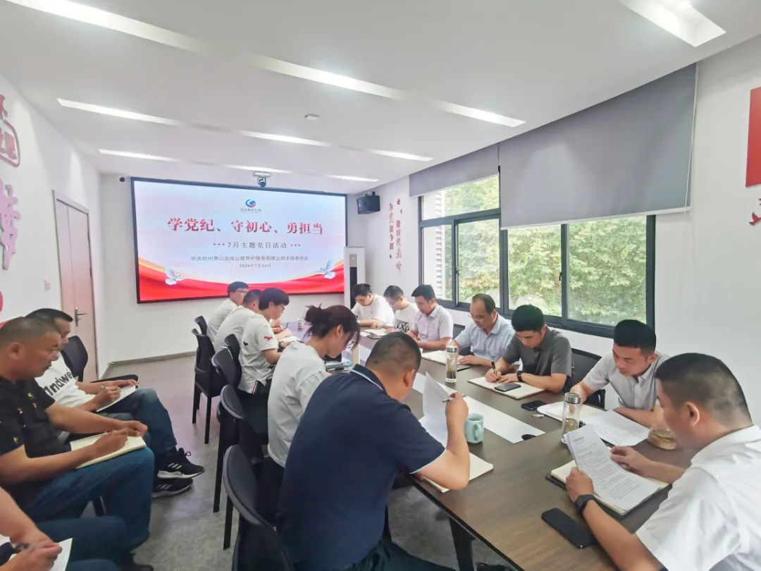 會上,黨支部書記陳鋒帶領大家學習貫徹黨的二十屆三中全會、區警示教育會、集團半年度黨建工作會議有關精神。支部委員傳達學習《浙江黨史上的“為黨守紀”故事啟示錄》。