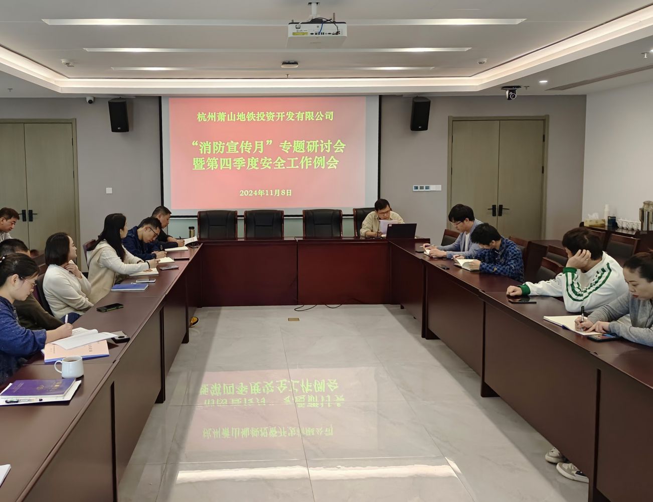 強化思想意識 筑牢安全防線  11月8日上午,地鐵投資公司召開“消防宣傳月”專題研討會暨第四季度安全工作例會。會議學習了習近平關于安全生產重要講話精神,觀看“九小”場所火災警示教育片;公司黨支部委員、副總經理郭凱為全體員工進行消防安全知識培訓,并總結匯報四季度安全檢查及防臺工作情況。