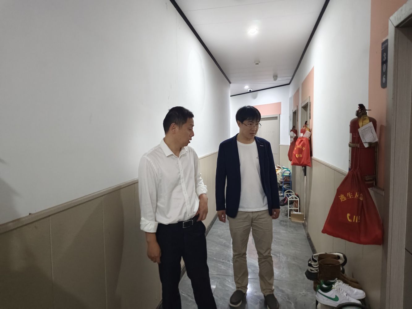 黨支部委員、副總經理沈偉才帶隊檢查潘水服務用房。