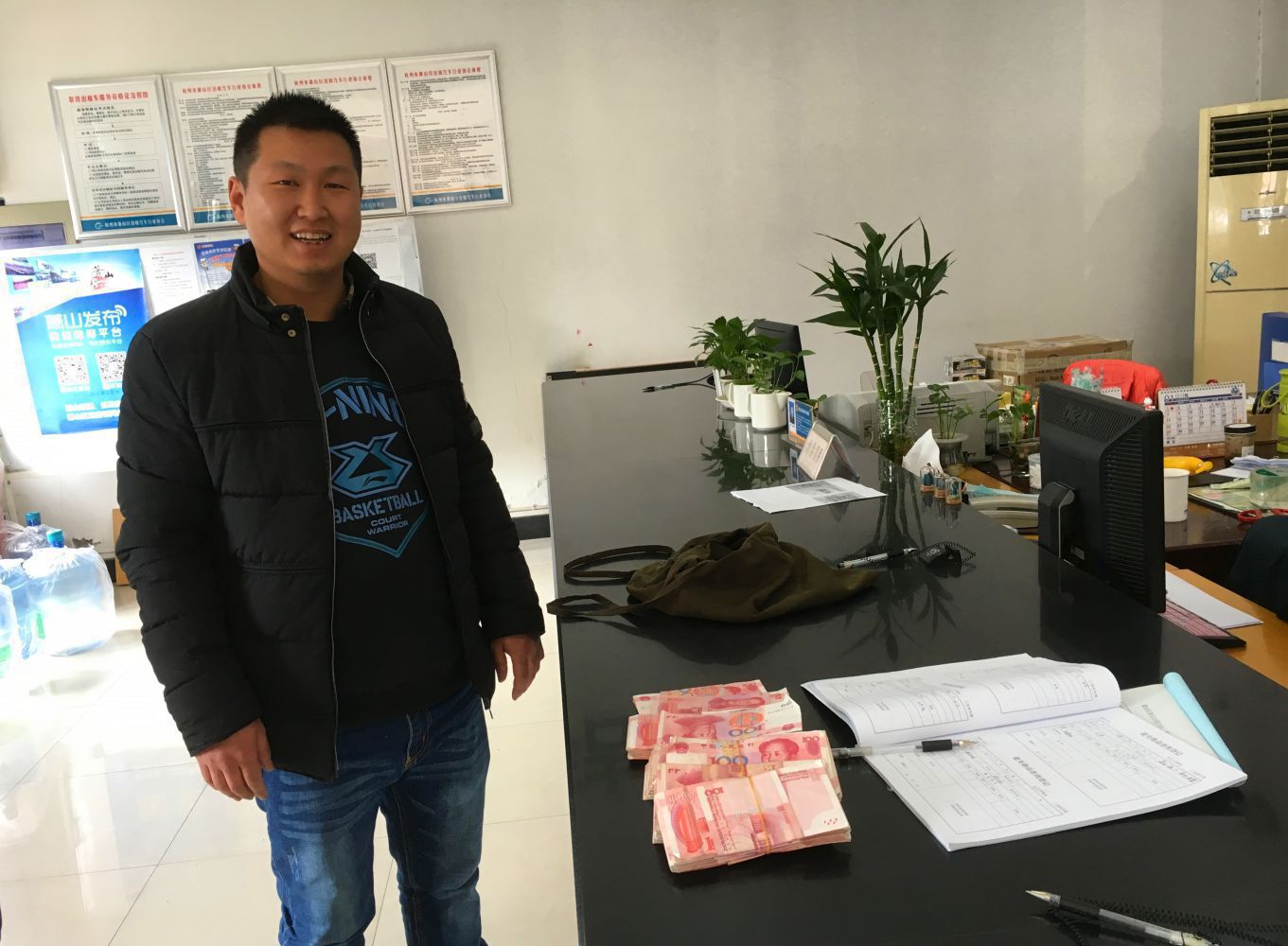 他立刻和公司取得聯系,進行溝通后才找到失主信息。為了不讓失主著急,孫師傅就放下手頭的生意,急忙趕至區道路運輸管理處出租汽車綜合服務區大廳,核實情況之后,將這筆巨款完完整整地交還給了失主賈先生。