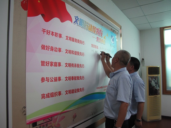 最后,全體黨員參與了“文明行動我先行”簽名活動,承諾帶頭做好文明表率,主動發揮黨員先鋒模范作用。