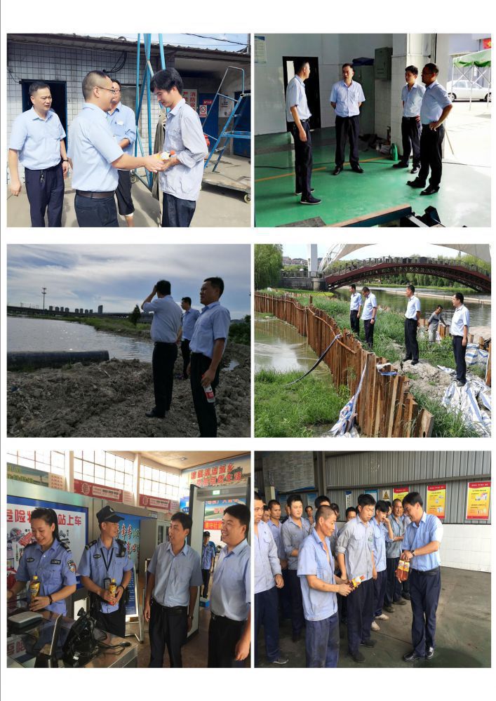 7月18日,公司總經(jīng)理湯偉東,副總經(jīng)理潘國華來到東站修理廠、特檢公司進行高溫安全檢查,并向奮戰(zhàn)在生產(chǎn)一線的工作人員送去了清涼飲料。 檢查時,公司領(lǐng)導(dǎo)與員工進行了親切的交談,詳細了解了生產(chǎn)一線情況和人員身體情況。同時,就高溫作業(yè)情況下的生產(chǎn)安全提出了要求。廣大員工一定要把安全生產(chǎn)放在第一位,合理安排時間,注重勞逸結(jié)合。各單位一定要做好各項防暑降溫措施,積極應(yīng)對高溫天氣造成的不利因素,確保生產(chǎn)工作安全有序。與此同時,公司副總經(jīng)理許明芳帶隊相關(guān)人員排查了湘運公司消防設(shè)施、員工宿舍及清淤現(xiàn)場用電設(shè)備等安全使用情況。對城區(qū)河道清淤現(xiàn)場的一線工作人員進行慰問。最后,就高溫作業(yè)提出了安全工作要求。