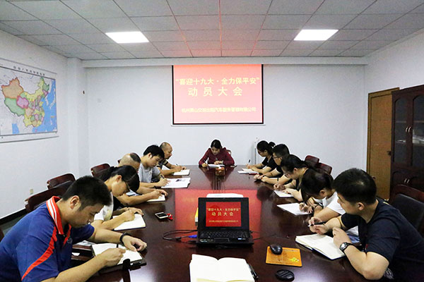 為迎接黨的十九大順利召開,切實做好文明城市復評迎檢工作。8月23日上午,交投出租車公司召開“喜迎十九大,全力保平安”動員大會。 會上,公司執行董事、總經理王建維首先傳達了集團“喜迎十九大 全力保平安”動員大會精神。針對涉及交投出租車公司需要重點做好的相關工作要求,公司執行董事、總經理王建維強調五點:一是加強出租車人員的文明服務培訓教育工作;二是轉變工作方式,以服務為導向,多傾聽駕駛員的訴求;三是加強車容車貌檢查,有計劃的對車輛的外觀和內飾的整潔度進行檢查;四加強安全隱患排查,尤其是對車輛檢查,辦公區域的消防檢查,發現問題及時整改落實并如實上報;五是積極開展應急預案演練,提高全員的安全意識和突發事件的應急處置能力;六是要求全體員工從自身做起,從小事做起,做到文明出行,文明行車,帶頭做好全國文明城市復評迎檢工作。