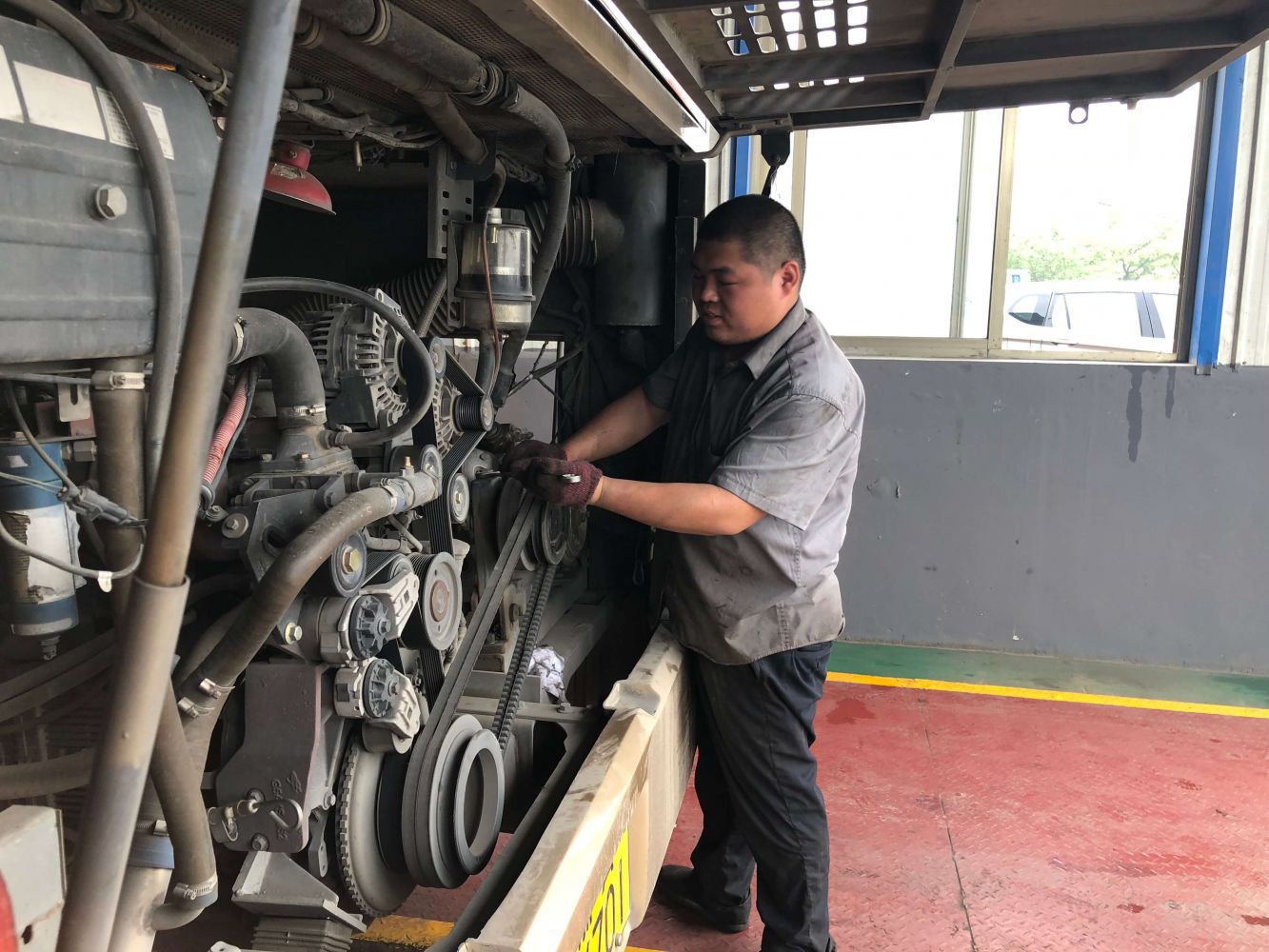此外, 為確保公交車輛技術狀況良好、減少夏季車輛故障,公司組織修理部門按計劃、有針對性地完成了1508輛公交車輛的換季維護工作,對車輛進行全方位“體檢”,及時消除發(fā)現(xiàn)的安全隱患,確保高溫來臨時冷空調(diào)能正常使用、窗簾能有效遮陽等,為市民乘車提供一個清涼的車廂環(huán)境。